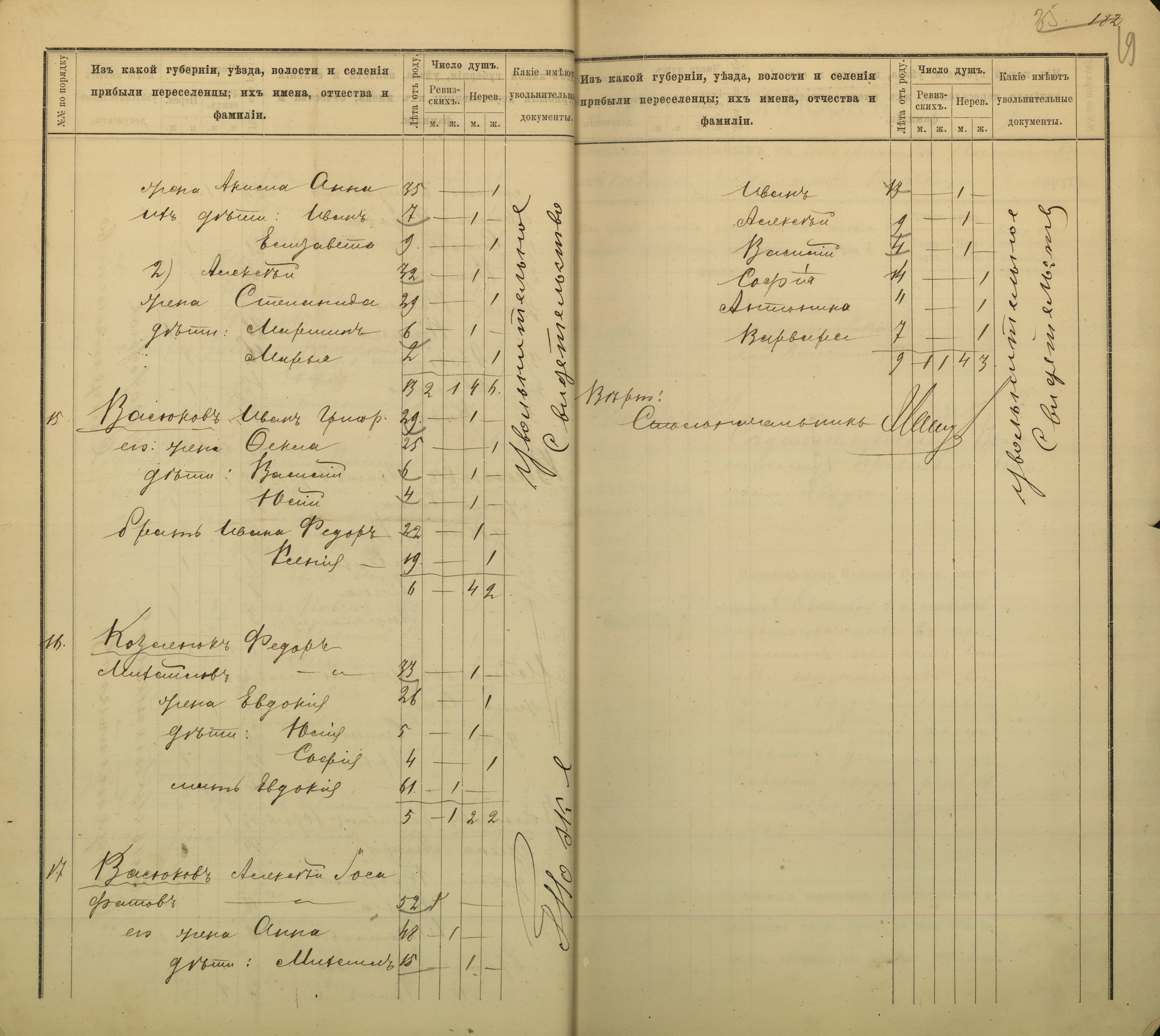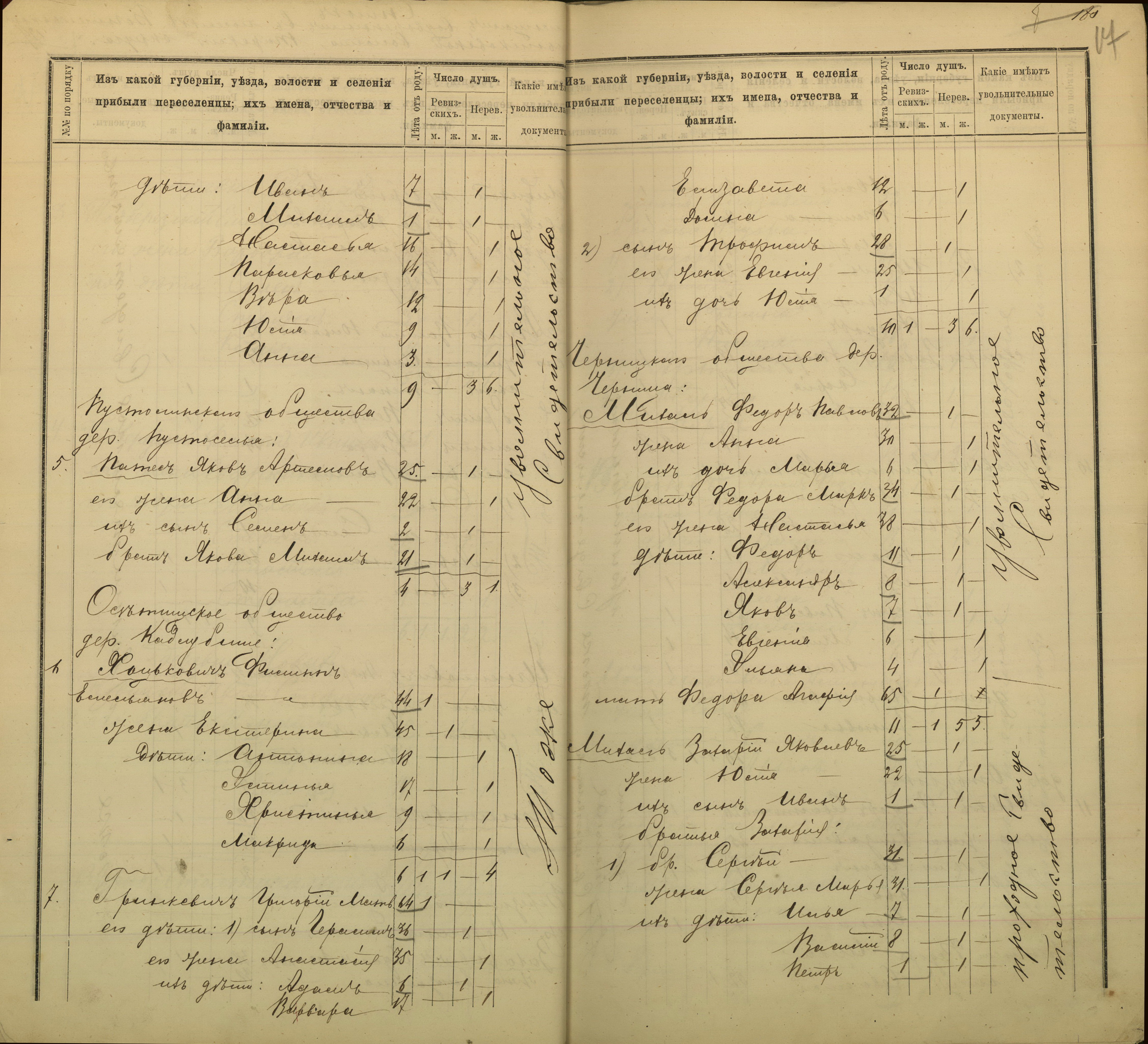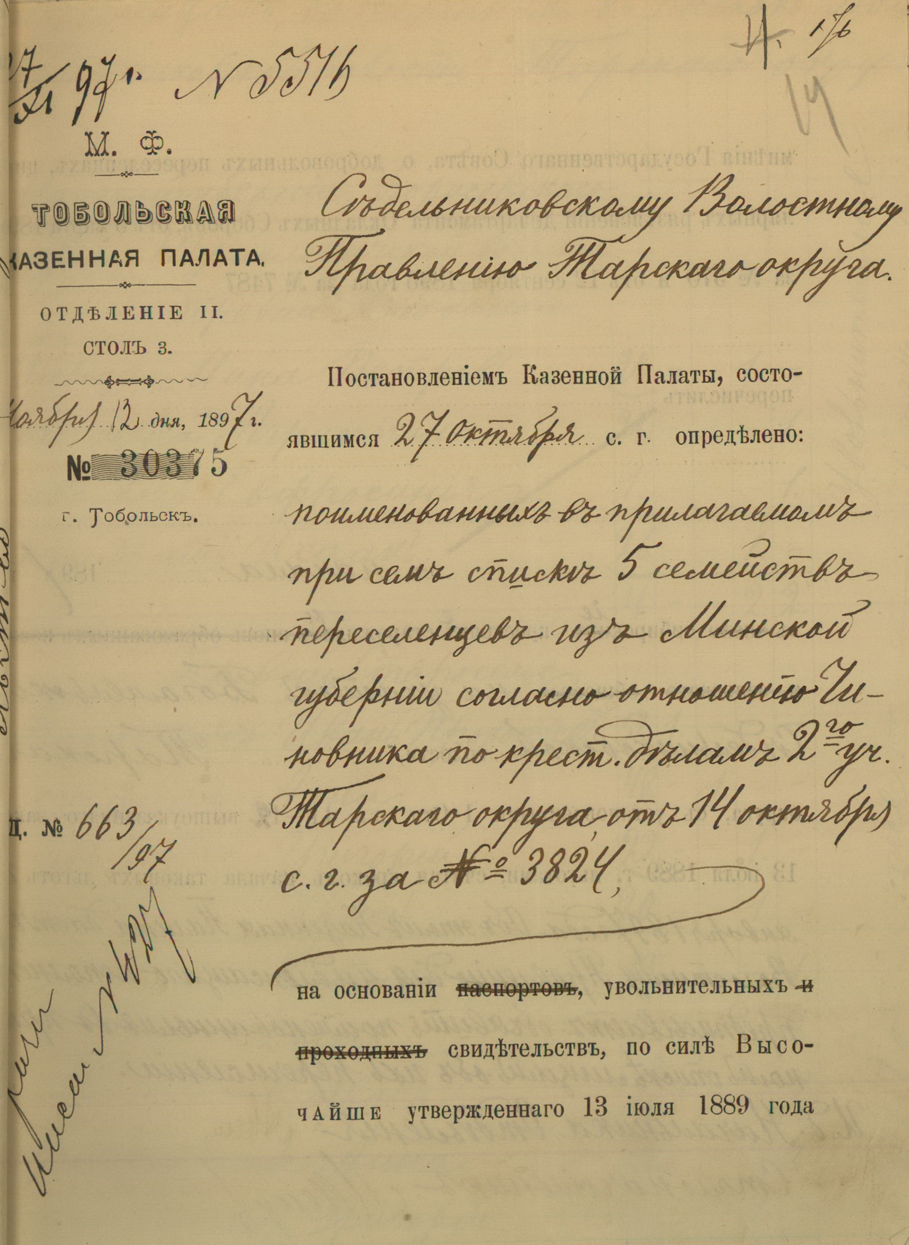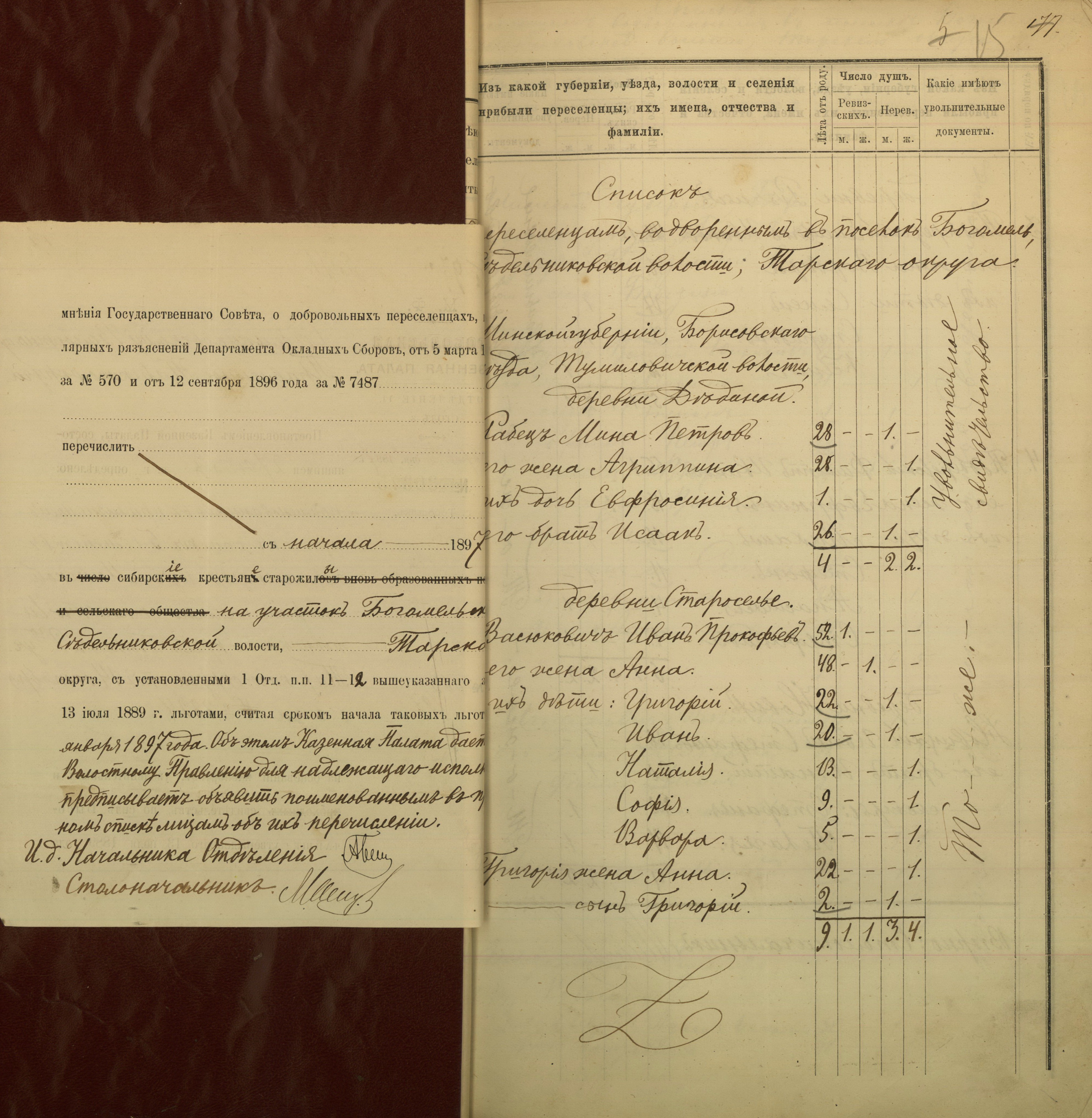 Назва: Спіс перасяленцаў ў пасёлку Багамель Сядзельнікаўскай воласці Тарскага павета - 1897